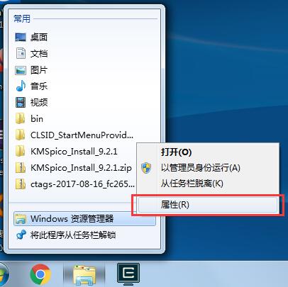 右键任务栏库图标,右键弹出菜单里的“Windows 资源管理器”,单击“属性”。