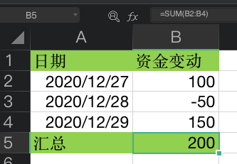 当前 B5 单元格的公式为 =SUM(B2:B4),但是在汇总行上面插入一行新的记录后,汇总数据不会自动更新。