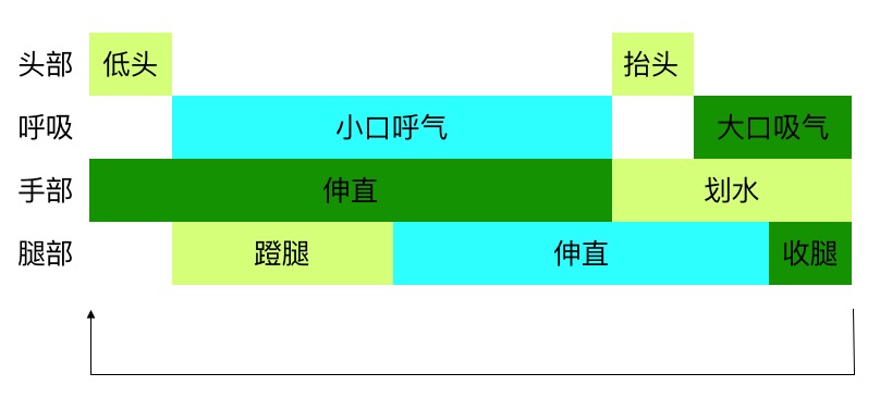 - 先划手,后收腿,先伸胳膊后蹬腿。